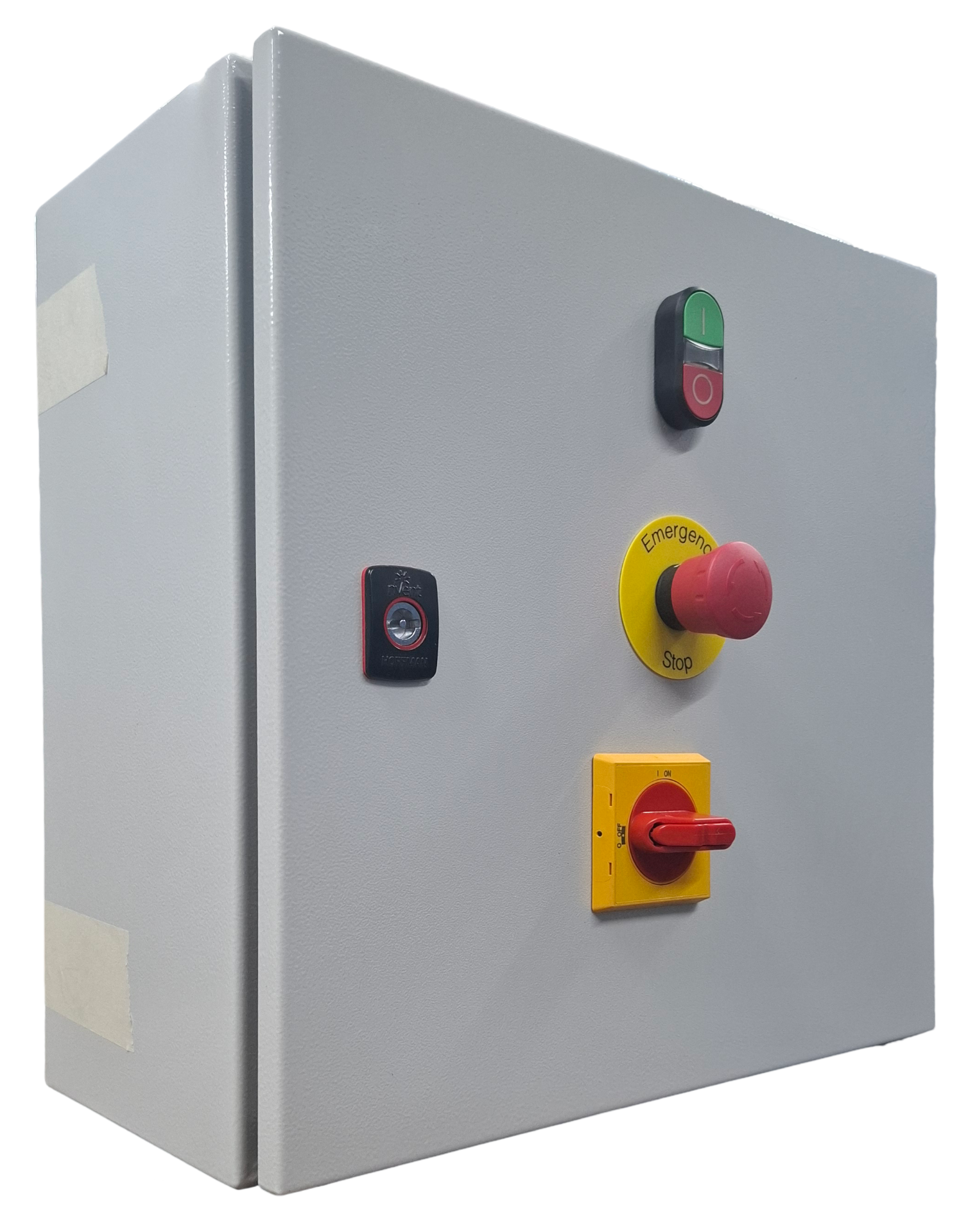 15kW 3Ph 415V 50Hz SupplyIP65 mild steel enclosure.Start / Stop & E-Stop buttons on panel2 Phase controlled soft starterOverload & short-circuit protectionNormal starting (CLASS 10)